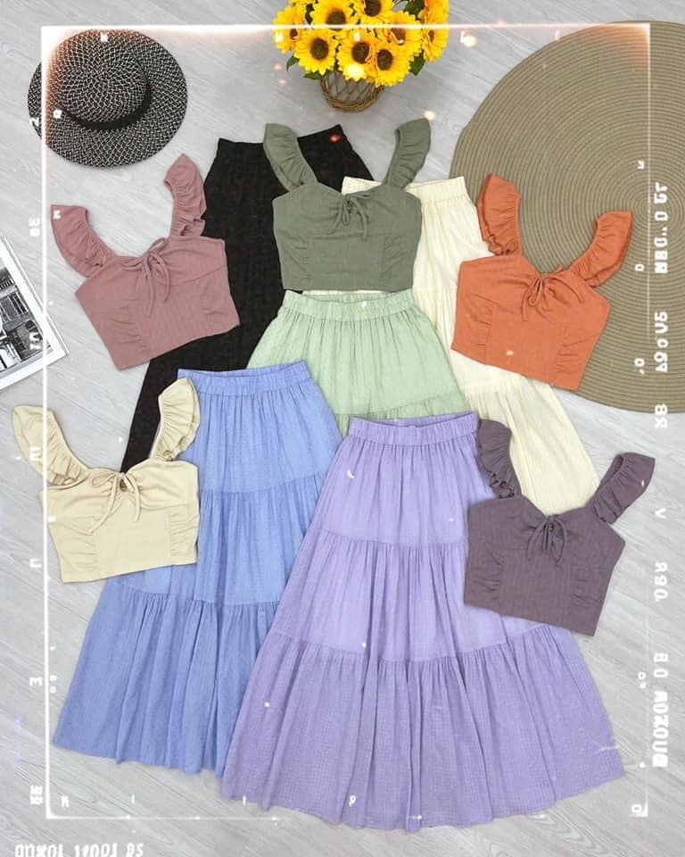 Free Size Top: bust 72-86 / length 37 Skirt: Hwaist 58-84 / hip 100-118 / length 79